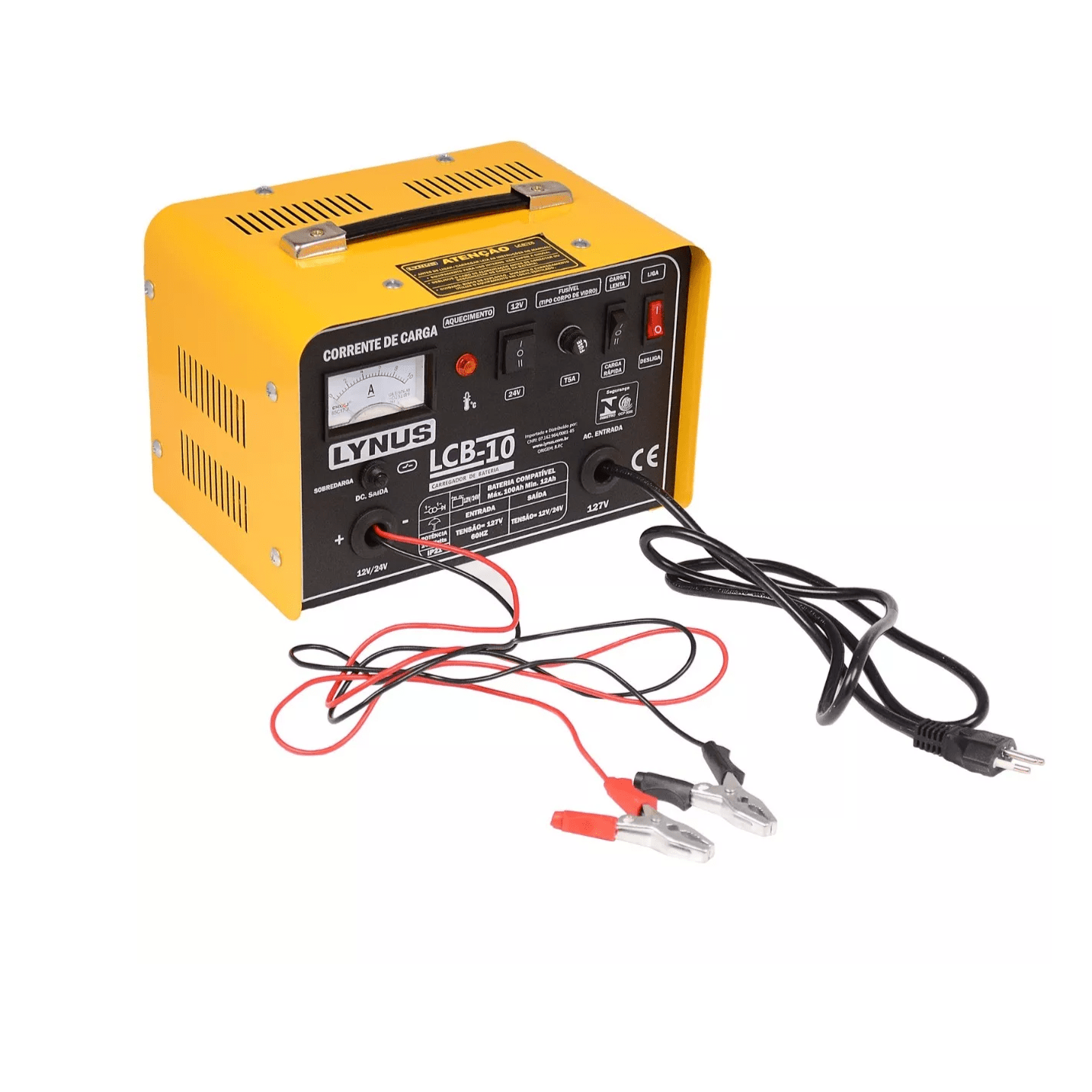 O Carregador de Bateria LCB-10 Lynus é um carregador de baterias robusto, portátil e eficiente, projetado para recuperar e manter a carga de baterias de 12 V e 24 V, ideal para uso em veículos automotivos, motos, máquinas e equipamentos elétricos que utilizem baterias dentro da faixa de 12 Ah a 100 Ah.