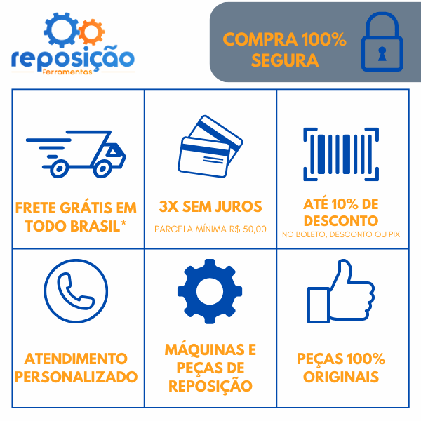 Design Compacto: A chave de impacto possui um design compacto para facilitar o manuseio e a acessibilidade em espaços apertados;