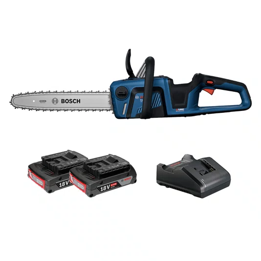 O Kit Bosch Motosserra GKE 18V-40 + 2 Baterias 2Ah e Carregador Bivolt é a escolha certa para quem busca mobilidade, praticidade e controle, com um conjunto mais leve e fácil de transportar. O kit inclui a motosserra a bateria Bosch GKE 18V-40 Professional, duas baterias 18V de 2 Ah e carregador bivolt, ideal para trabalhos ocasionais e profissionais de menor intensidade.