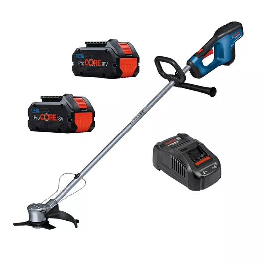 profissionais que buscam alto desempenho, autonomia prolongada e robustez em serviços de corte e manutenção de áreas verdes. O conjunto é composto pela roçadeira a bateria Bosch GFR 18V-23 Professional, duas baterias ProCORE18V de 8 Ah e carregador 220 V, oferecendo potência equivalente a equipamentos a combustão, com a praticidade do sistema sem fio.