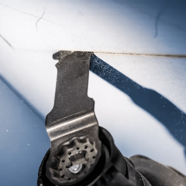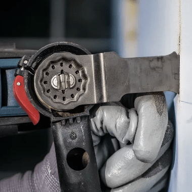 O design inovador Curved-Tec (face de corte arredondada) permite cortes de imersão precisos e controlados desde o início, facilitando o trabalho em áreas de difícil acesso, como para cortes rentes em batentes de porta ou drywall para instalação de tomadas.