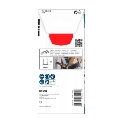 Maximize a eficiência das suas ferramentas multicortadoras oscilantes com a Lâmina de Serra de Imersão Bosch PRO AIZ 32 APIB. Projetada com a robusta tecnologia Bi-Metal (BIM), que combina uma lâmina HCS e dentes HSS, esta lâmina oferece uma resistência superior ao desgaste e ao calor, resultando em uma vida útil até 5 vezes maior do que lâminas convencionais, como a AIZ 20 AB da Bosch.